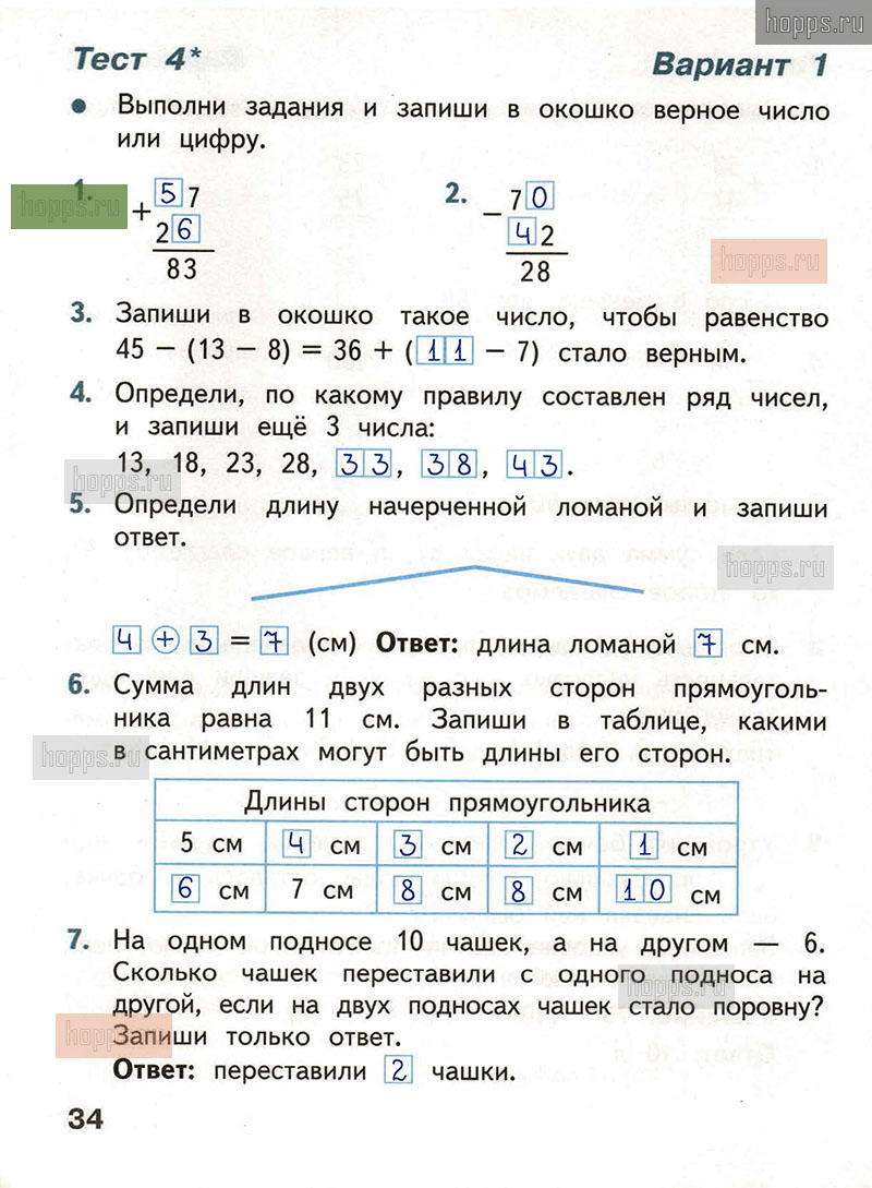 Подробные ответы к заданиям, расположенным на 34 странице тестов по математике автора С.И. Волкова для учащихся 2 класса.