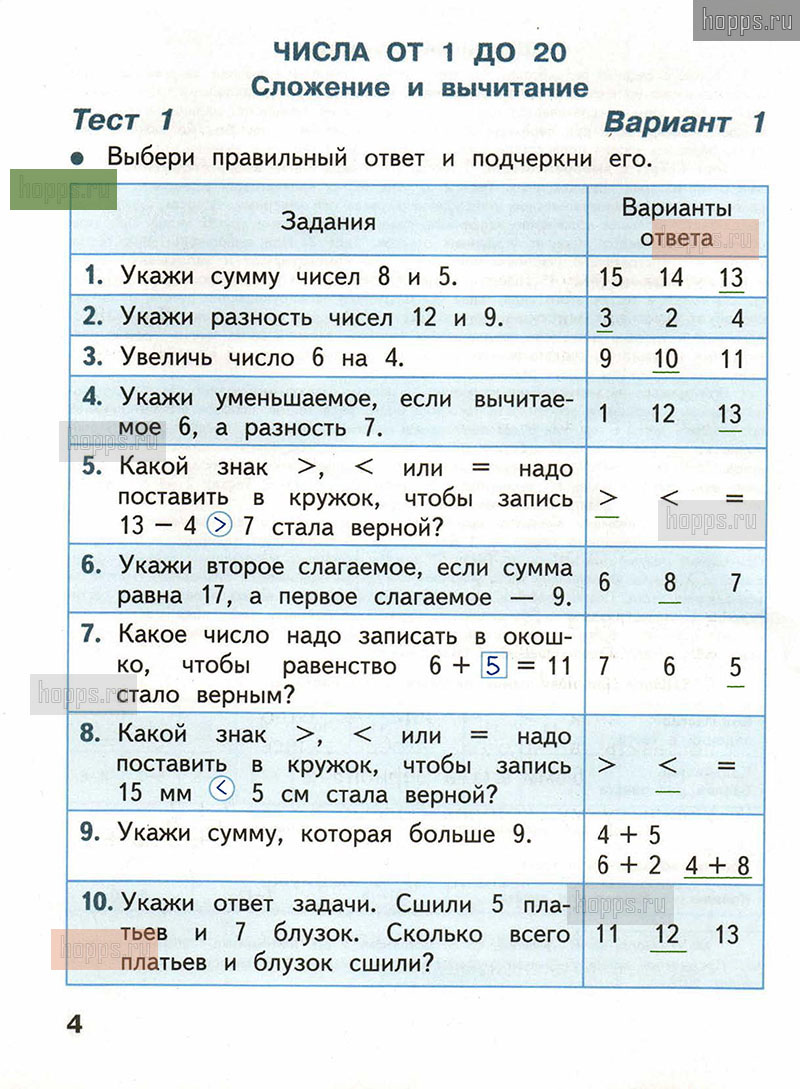 ГДЗ к 4 странице тестов по математике С.И. Волкова за 2 класс | Источник: Hopps.ru