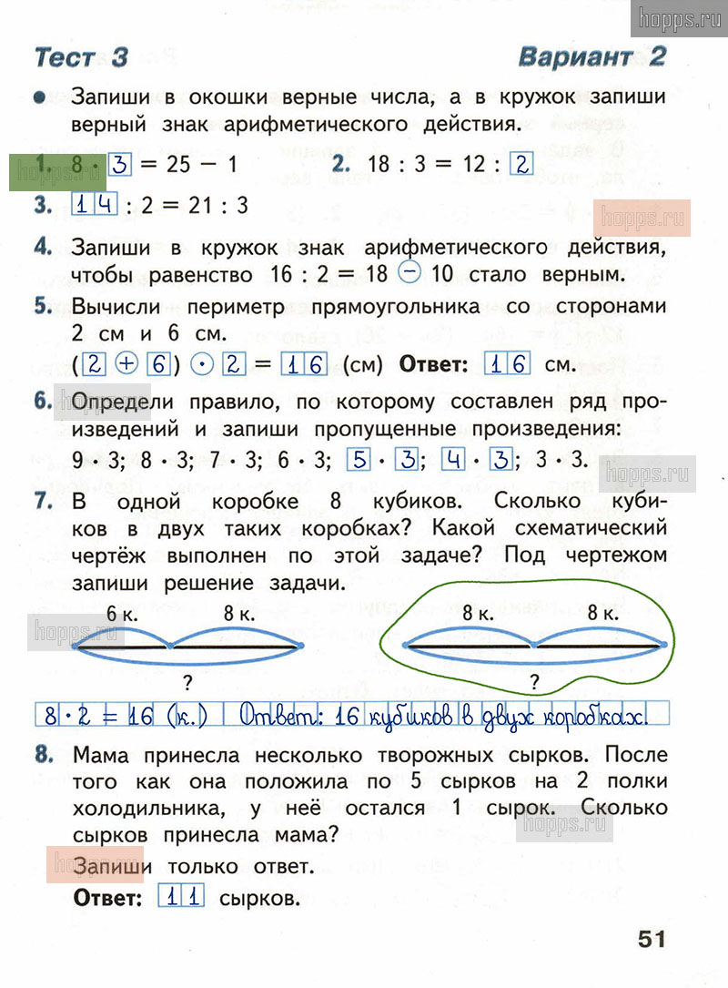 Подробные ответы к заданиям, расположенным на 51 странице тестов по математике автора С.И. Волкова для учащихся 2 класса.