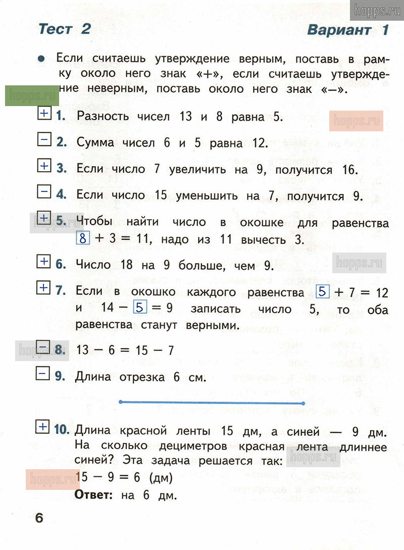 Подробные ответы к заданиям, расположенным на 6 странице тестов по математике автора С.И. Волкова для учащихся 2 класса.