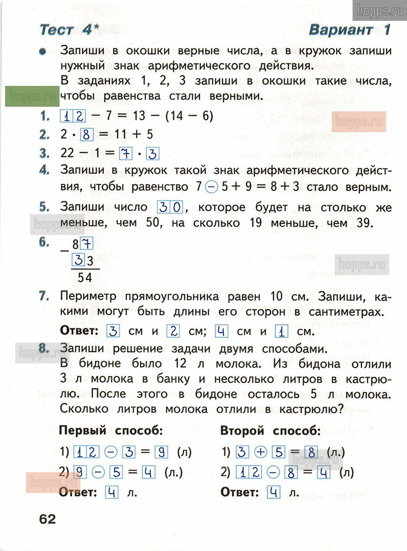 Подробные ответы к заданиям, расположенным на 62 странице тестов по математике автора С.И. Волкова для учащихся 2 класса.
