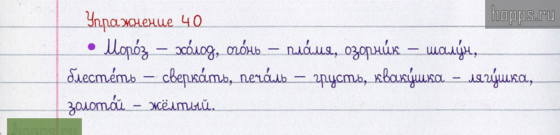 Готовые ответы к 40 упражнению 1 части рабочей тетради по русскому языку автора В.П. Канакина для учащихся 2 класса, 2019 г.