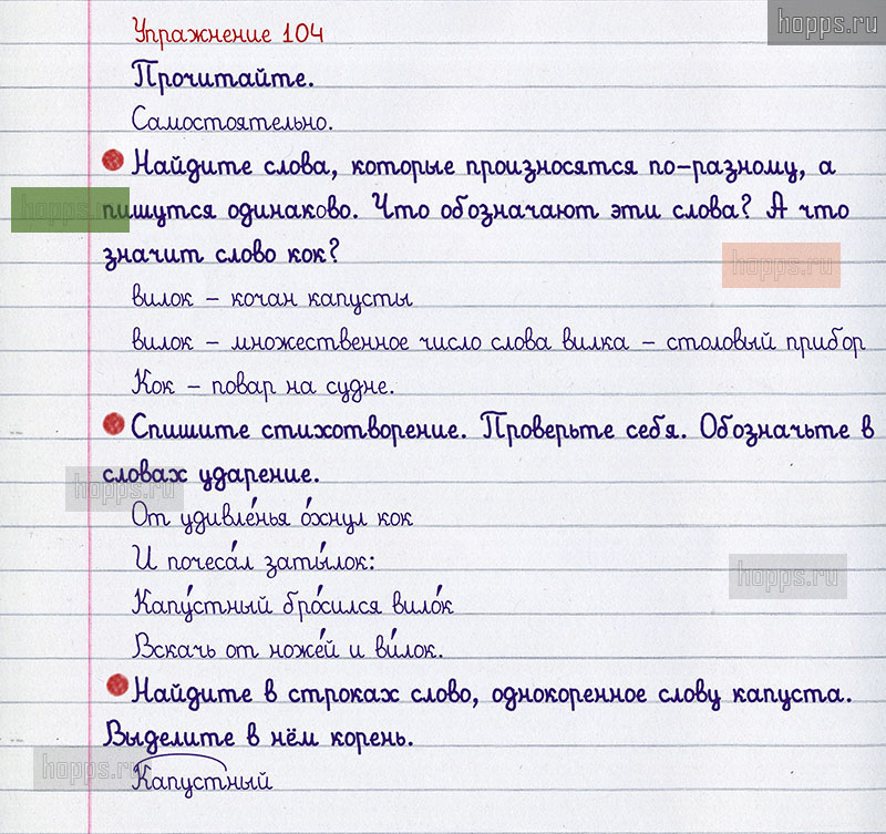 Подробные ответы к 104 упражнению 1 части учебника по русскому языку авторов В.П. Канакина, В.Г. Горецкий для учащихся 2 класса. Слог. Ударение. Перенос слова.