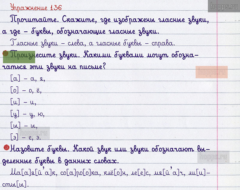 Подробные ответы к 136 упражнению 1 части учебника по русскому языку авторов В.П. Канакина, В.Г. Горецкий для учащихся 2 класса. Гласные звуки.
