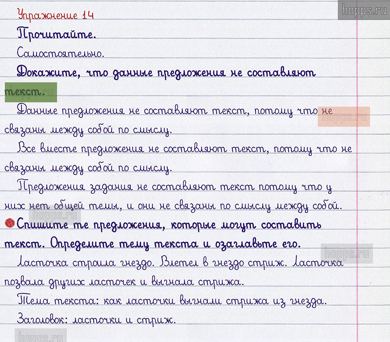Подробные ответы к 14 упражнению 1 части учебника по русскому языку авторов В.П. Канакина, В.Г. Горецкий для учащихся 2 класса. Текст.