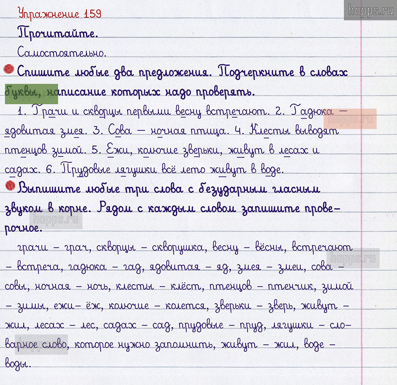 Подробные ответы к 159 упражнению 1 части учебника по русскому языку авторов В.П. Канакина, В.Г. Горецкий для учащихся 2 класса. Гласные звуки.