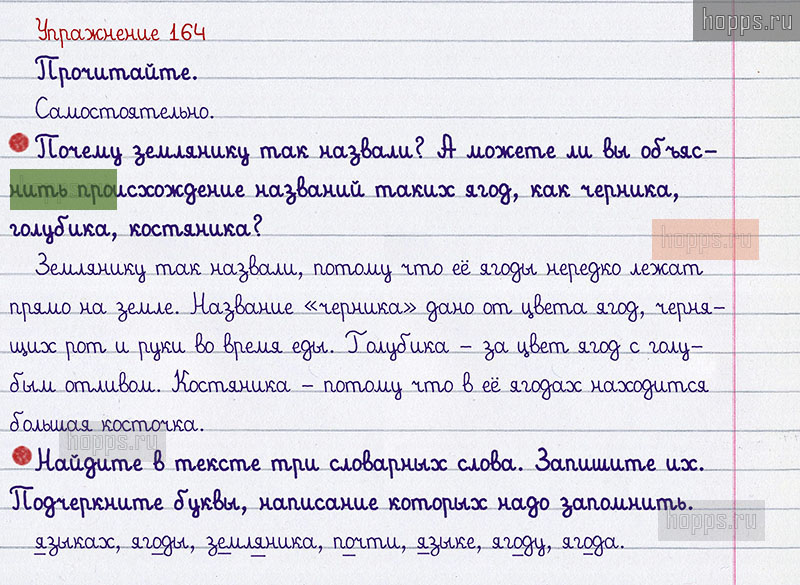 Подробные ответы к 164 упражнению 1 части учебника по русскому языку авторов В.П. Канакина, В.Г. Горецкий для учащихся 2 класса. Гласные звуки.