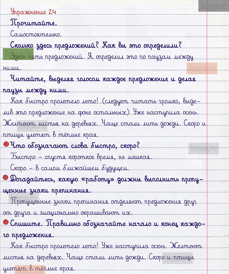 Подробные ответы к 24 упражнению 1 части учебника по русскому языку авторов В.П. Канакина, В.Г. Горецкий для учащихся 2 класса. Предложение.
