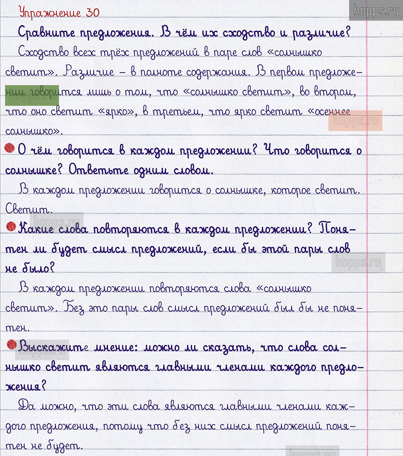 Подробные ответы к 30 упражнению 1 части учебника по русскому языку авторов В.П. Канакина, В.Г. Горецкий для учащихся 2 класса. Члены предложения.