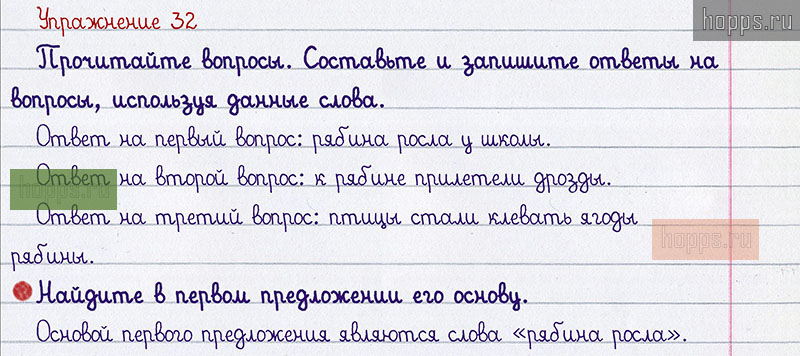 Подробные ответы к 32 упражнению 1 части учебника по русскому языку авторов В.П. Канакина, В.Г. Горецкий для учащихся 2 класса. Члены предложения.