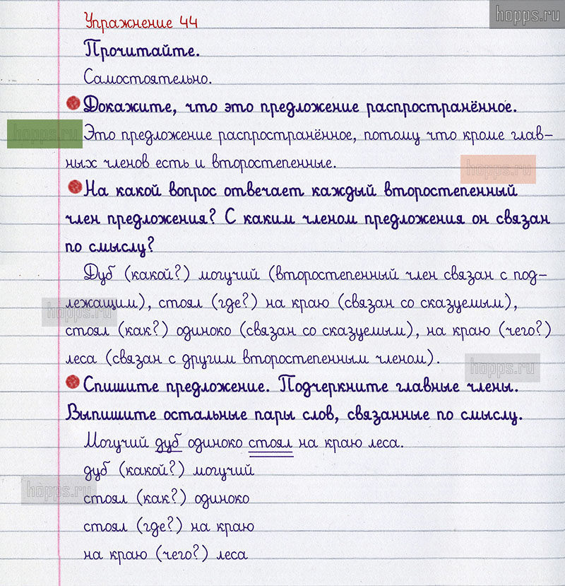 Подробные ответы к 44 упражнению 1 части учебника по русскому языку авторов В.П. Канакина, В.Г. Горецкий для учащихся 2 класса. Члены предложения.