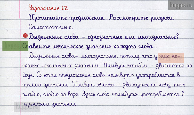 Подробные ответы к 62 упражнению 1 части учебника по русскому языку авторов В.П. Канакина, В.Г. Горецкий для учащихся 2 класса. Слово и его значение.