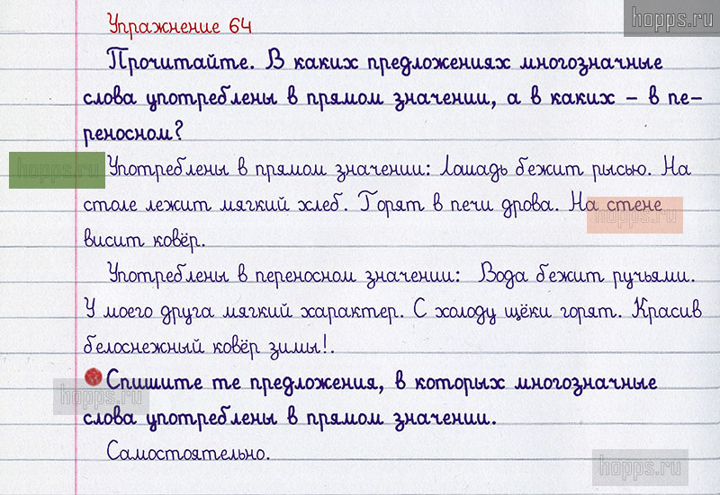Подробные ответы к 64 упражнению 1 части учебника по русскому языку авторов В.П. Канакина, В.Г. Горецкий для учащихся 2 класса. Слово и его значение.