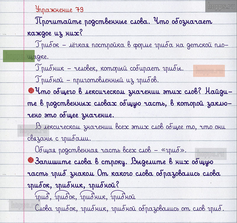 Подробные ответы к 79 упражнению 1 части учебника по русскому языку авторов В.П. Канакина, В.Г. Горецкий для учащихся 2 класса. Однокоренные слова.