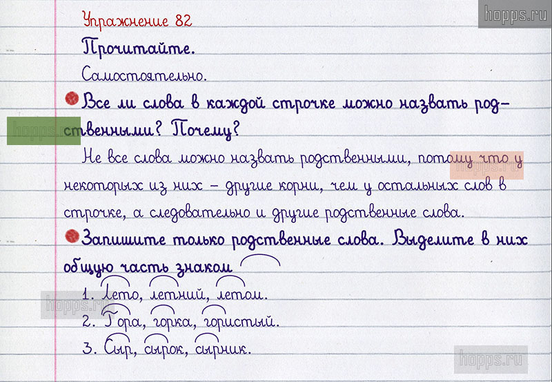 Подробные ответы к 82 упражнению 1 части учебника по русскому языку авторов В.П. Канакина, В.Г. Горецкий для учащихся 2 класса. Однокоренные слова.
