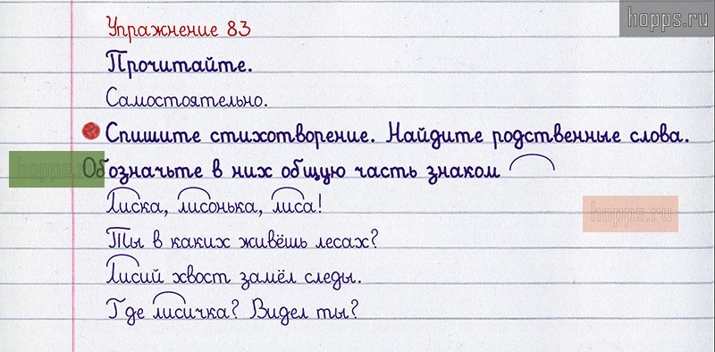 Подробные ответы к 83 упражнению 1 части учебника по русскому языку авторов В.П. Канакина, В.Г. Горецкий для учащихся 2 класса. Однокоренные слова.
