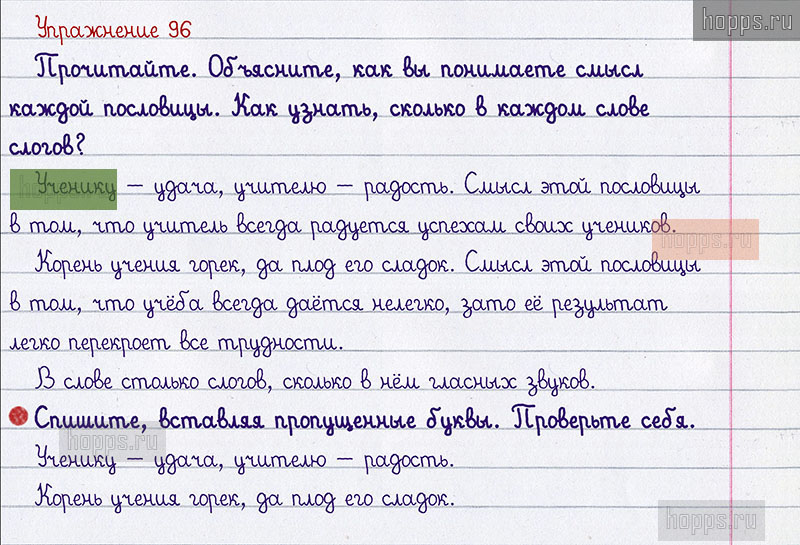 Подробные ответы к 96 упражнению 1 части учебника по русскому языку авторов В.П. Канакина, В.Г. Горецкий для учащихся 2 класса. Слог. Ударение. Перенос слова.