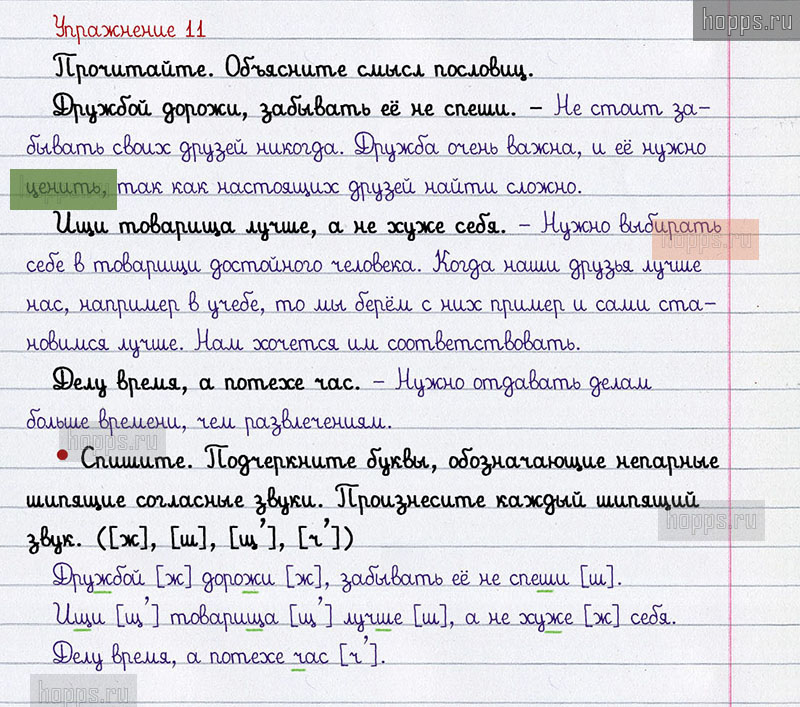 Подробные ответы к 11 упражнению 2 части учебника по русскому языку авторов В.П. Канакина, В.Г. Горецкий для учащихся 2 класса. Правописание буквосочетаний с шипящими звуками.