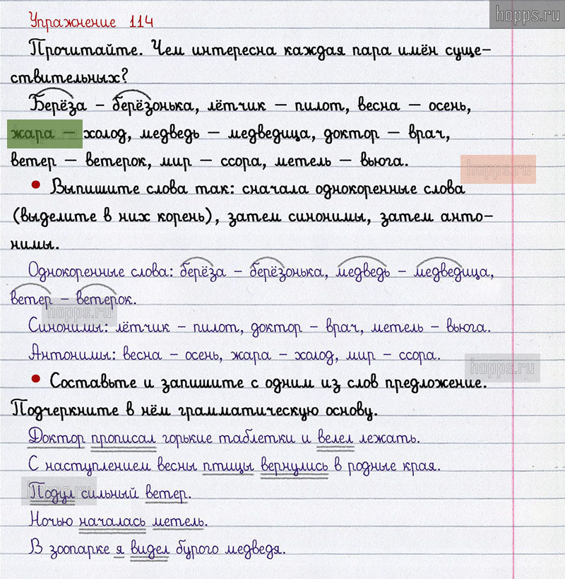 Подробные ответы к 114 упражнению 2 части учебника по русскому языку авторов В.П. Канакина, В.Г. Горецкий для учащихся 2 класса. Имя существительное.