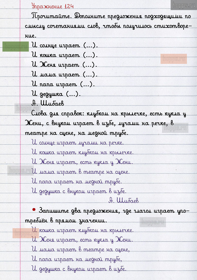 Подробные ответы к 124 упражнению 2 части учебника по русскому языку авторов В.П. Канакина, В.Г. Горецкий для учащихся 2 класса. Глагол.