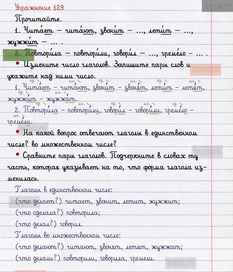 Подробные ответы к 129 упражнению 2 части учебника по русскому языку авторов В.П. Канакина, В.Г. Горецкий для учащихся 2 класса. Глагол.