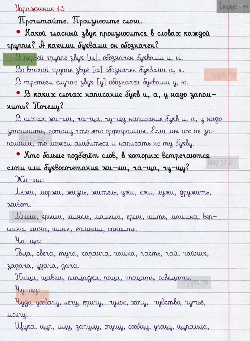 Подробные ответы к 13 упражнению 2 части учебника по русскому языку авторов В.П. Канакина, В.Г. Горецкий для учащихся 2 класса. Правописание буквосочетаний с шипящими звуками.