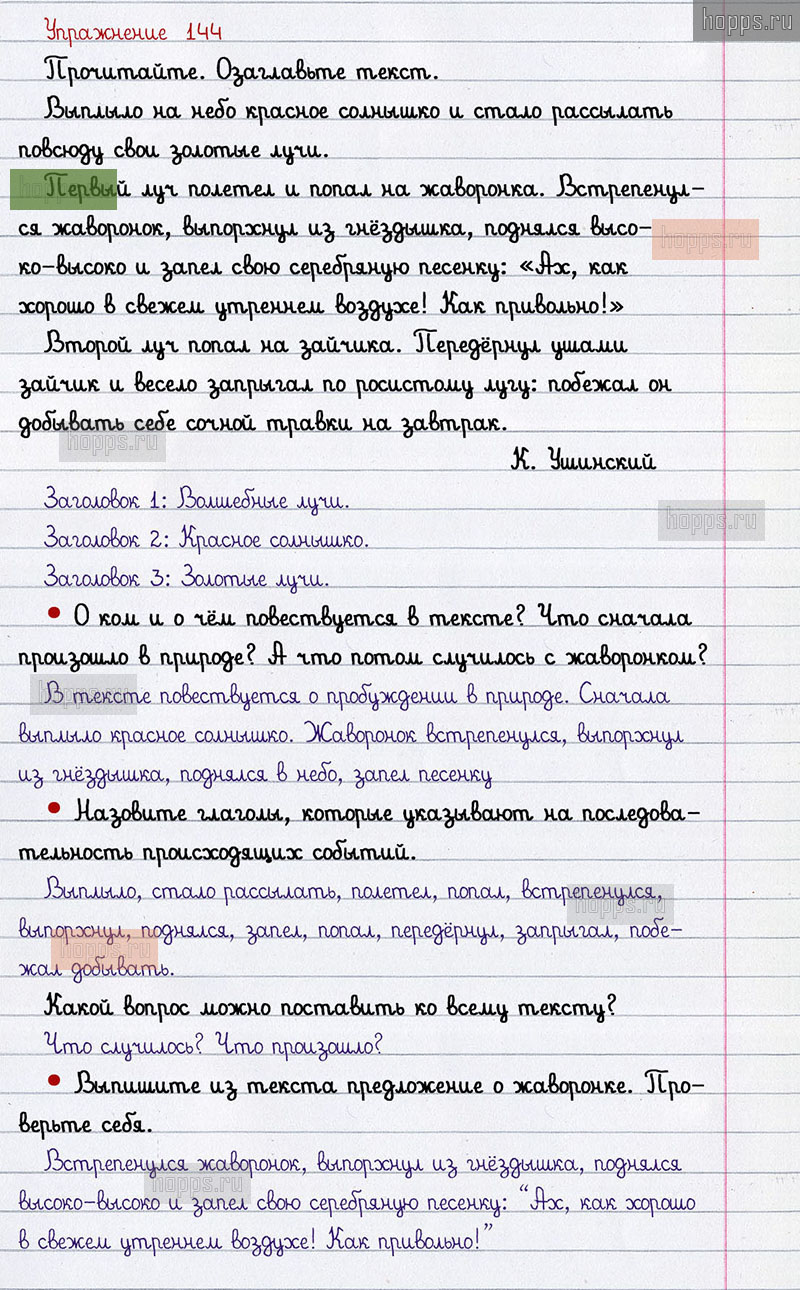 Подробные ответы к 144 упражнению 2 части учебника по русскому языку авторов В.П. Канакина, В.Г. Горецкий для учащихся 2 класса. Глагол.
