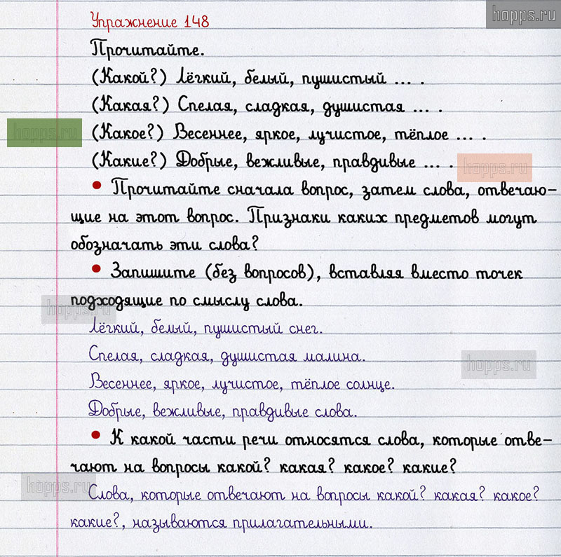 Подробные ответы к 148 упражнению 2 части учебника по русскому языку авторов В.П. Канакина, В.Г. Горецкий для учащихся 2 класса. Имя прилагательное.