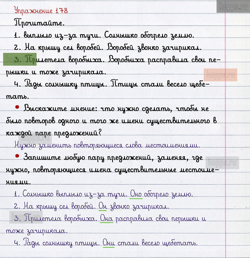 Подробные ответы к 178 упражнению 2 части учебника по русскому языку авторов В.П. Канакина, В.Г. Горецкий для учащихся 2 класса. Местоимение.