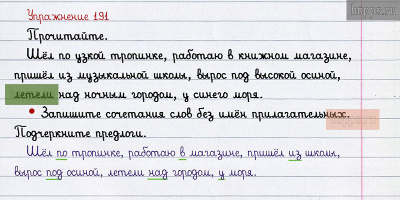 Подробные ответы к 191 упражнению 2 части учебника по русскому языку авторов В.П. Канакина, В.Г. Горецкий для учащихся 2 класса. Предлоги.