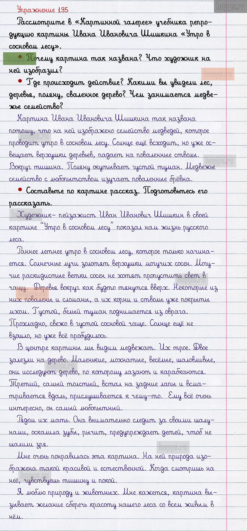 Подробные ответы к 195 упражнению 2 части учебника по русскому языку авторов В.П. Канакина, В.Г. Горецкий для учащихся 2 класса. Повторение.