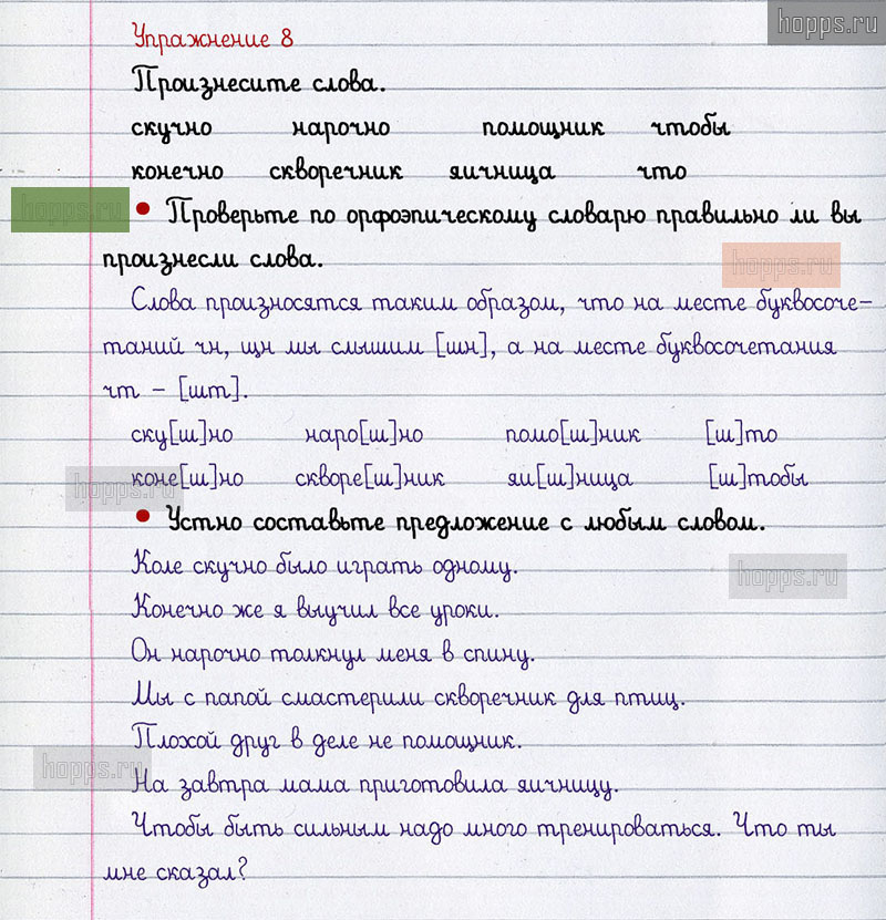 Подробные ответы к 8 упражнению 2 части учебника по русскому языку авторов В.П. Канакина, В.Г. Горецкий для учащихся 2 класса. Правописание буквосочетаний с шипящими звуками.