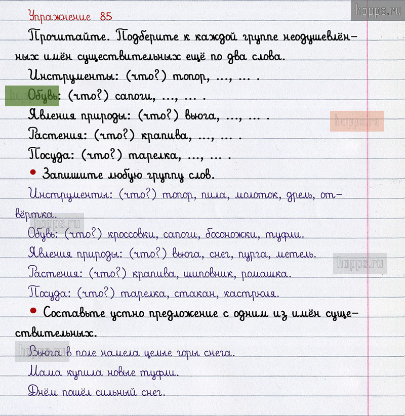 Подробные ответы к 85 упражнению 2 части учебника по русскому языку авторов В.П. Канакина, В.Г. Горецкий для учащихся 2 класса. Имя существительное.