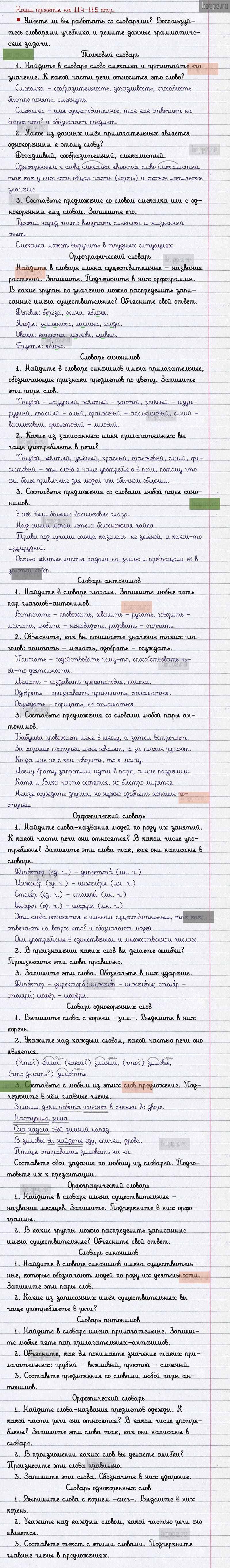 Подробные ответы к заданиям наши проекты на 114-115 странице 2 части учебника по русскому языку авторов В.П. Канакина, В.Г. Горецкий для учащихся 2 класса.