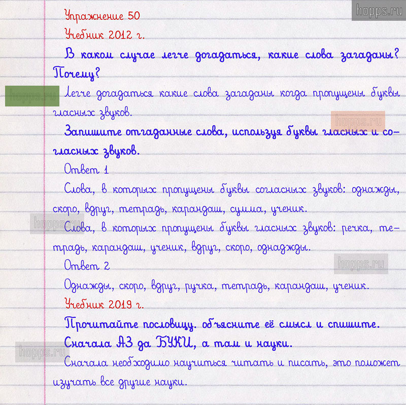 Подробные ответы к 50 упражнению 1 части учебника по русскому языку авторов Л.Ф. Климанова, Т.В. Бабушкина для учащихся 2 класса.