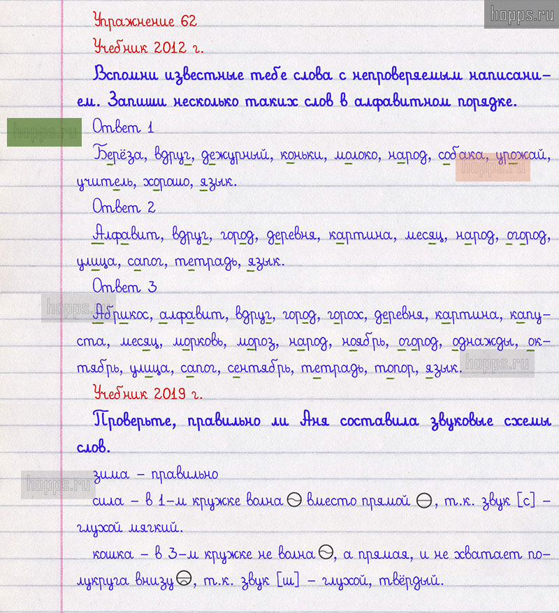 Подробные ответы к 62 упражнению 1 части учебника по русскому языку авторов Л.Ф. Климанова, Т.В. Бабушкина для учащихся 2 класса.