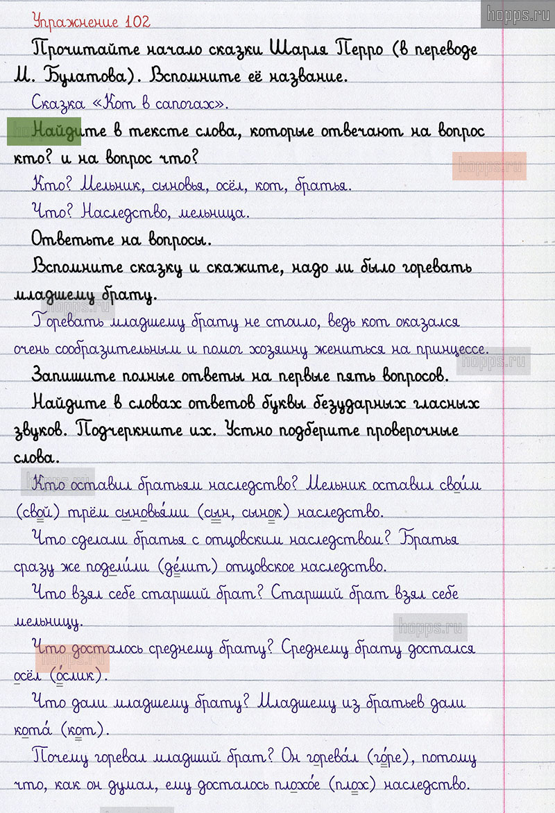Подробные ответы к 102 упражнению 2 части учебника 2012 года по русскому языку авторов Л.Ф. Климанова, Т.В. Бабушкина для учащихся 2 класса.