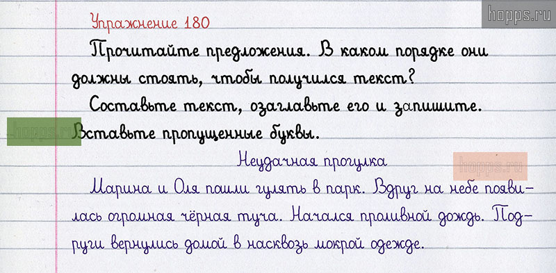 Подробные ответы к 180 упражнению 2 части учебника 2012 года по русскому языку авторов Л.Ф. Климанова, Т.В. Бабушкина для учащихся 2 класса.