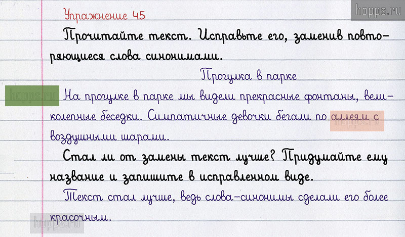 Подробные ответы к 45 упражнению 2 части учебника 2012 года по русскому языку авторов Л.Ф. Климанова, Т.В. Бабушкина для учащихся 2 класса.