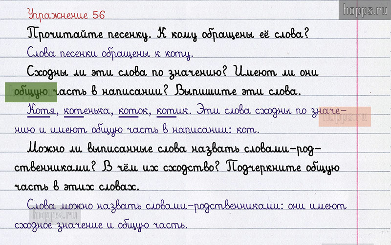 Подробные ответы к 56 упражнению 2 части учебника 2012 года по русскому языку авторов Л.Ф. Климанова, Т.В. Бабушкина для учащихся 2 класса.