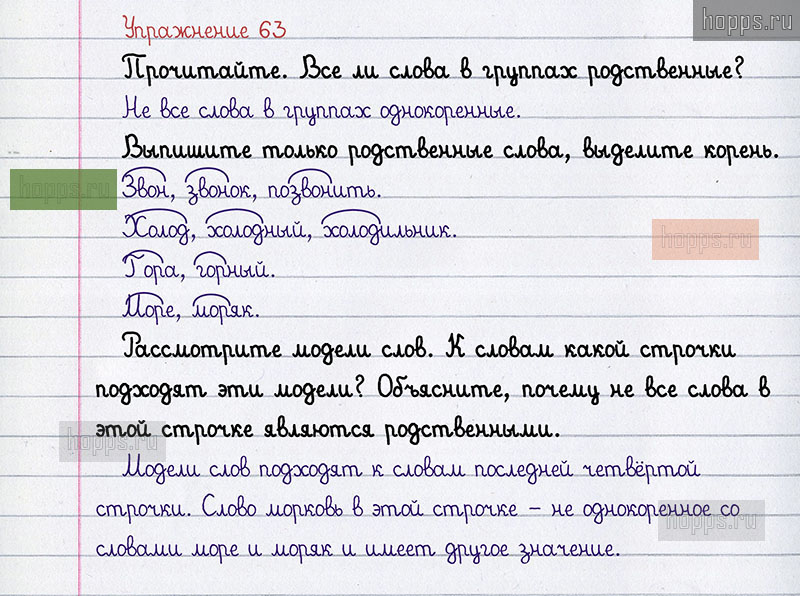 Подробные ответы к 63 упражнению 2 части учебника 2012 года по русскому языку авторов Л.Ф. Климанова, Т.В. Бабушкина для учащихся 2 класса.