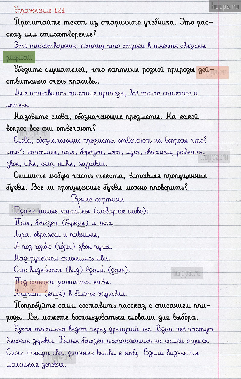Подробные ответы к 121 упражнению 2 части учебника 2019 года по русскому языку авторов Л.Ф. Климанова, Т.В. Бабушкина для учащихся 2 класса.