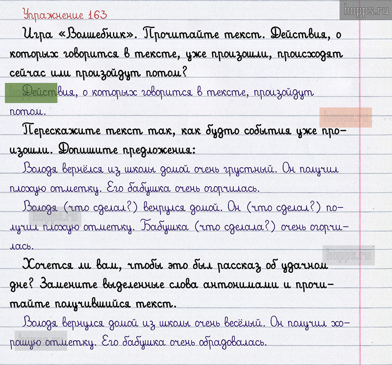 Подробные ответы к 163 упражнению 2 части учебника 2019 года по русскому языку авторов Л.Ф. Климанова, Т.В. Бабушкина для учащихся 2 класса.