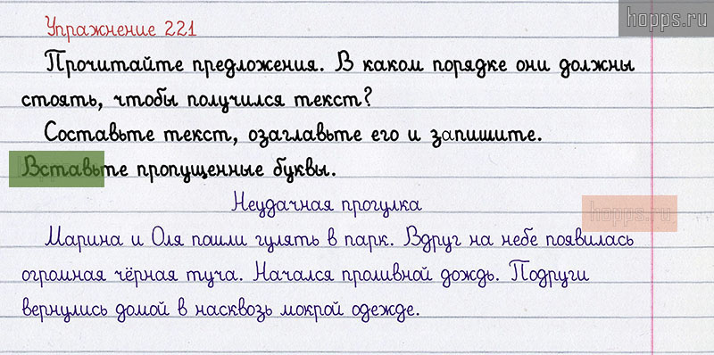 Подробные ответы к 221 упражнению 2 части учебника 2019 года по русскому языку авторов Л.Ф. Климанова, Т.В. Бабушкина для учащихся 2 класса.