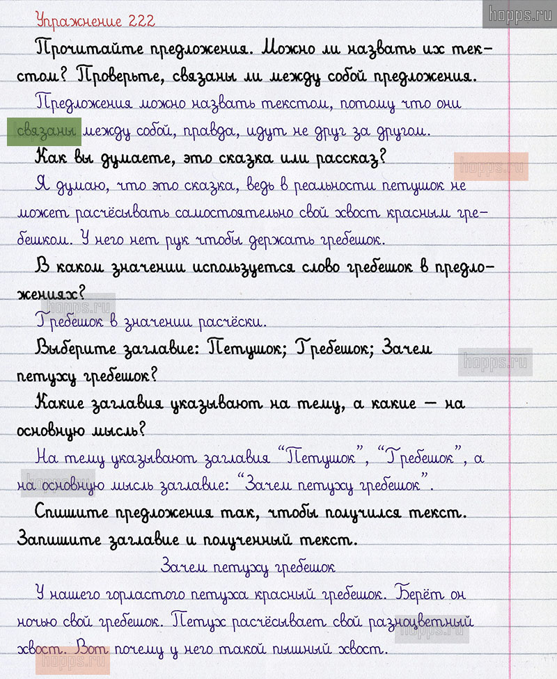 Подробные ответы к 222 упражнению 2 части учебника 2019 года по русскому языку авторов Л.Ф. Климанова, Т.В. Бабушкина для учащихся 2 класса.