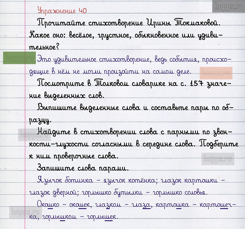 Подробные ответы к 40 упражнению 2 части учебника 2019 года по русскому языку авторов Л.Ф. Климанова, Т.В. Бабушкина для учащихся 2 класса.