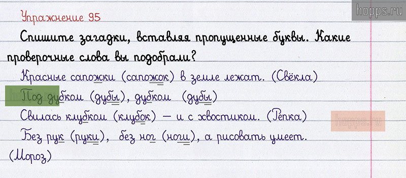 Подробные ответы к 95 упражнению 2 части учебника 2019 года по русскому языку авторов Л.Ф. Климанова, Т.В. Бабушкина для учащихся 2 класса.