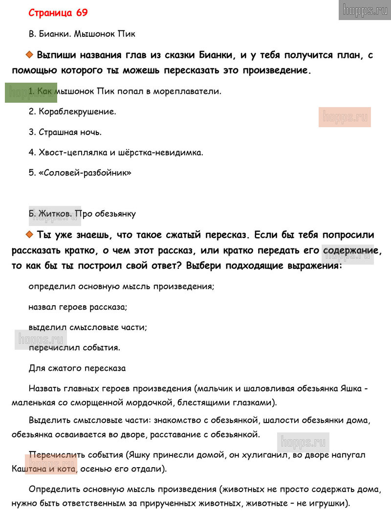 Готовые ответы к вопросам и заданиям на 69 странице рабочей тетради по литературному чтению для учащихся 3 класса, авторов М.В. Бойкина, Л.А. Виноградская, Школа России, 2019 г.