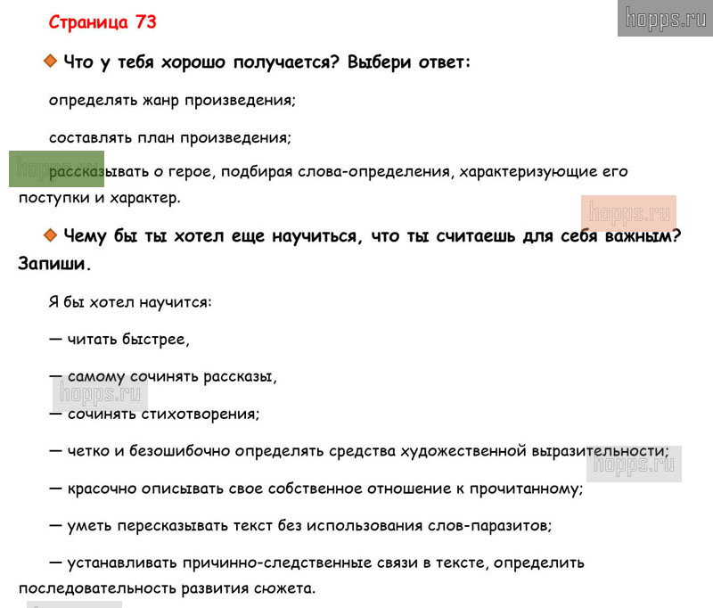 Готовые ответы к вопросам и заданиям на 73 странице рабочей тетради по литературному чтению для учащихся 3 класса, авторов М.В. Бойкина, Л.А. Виноградская, Школа России, 2019 г.