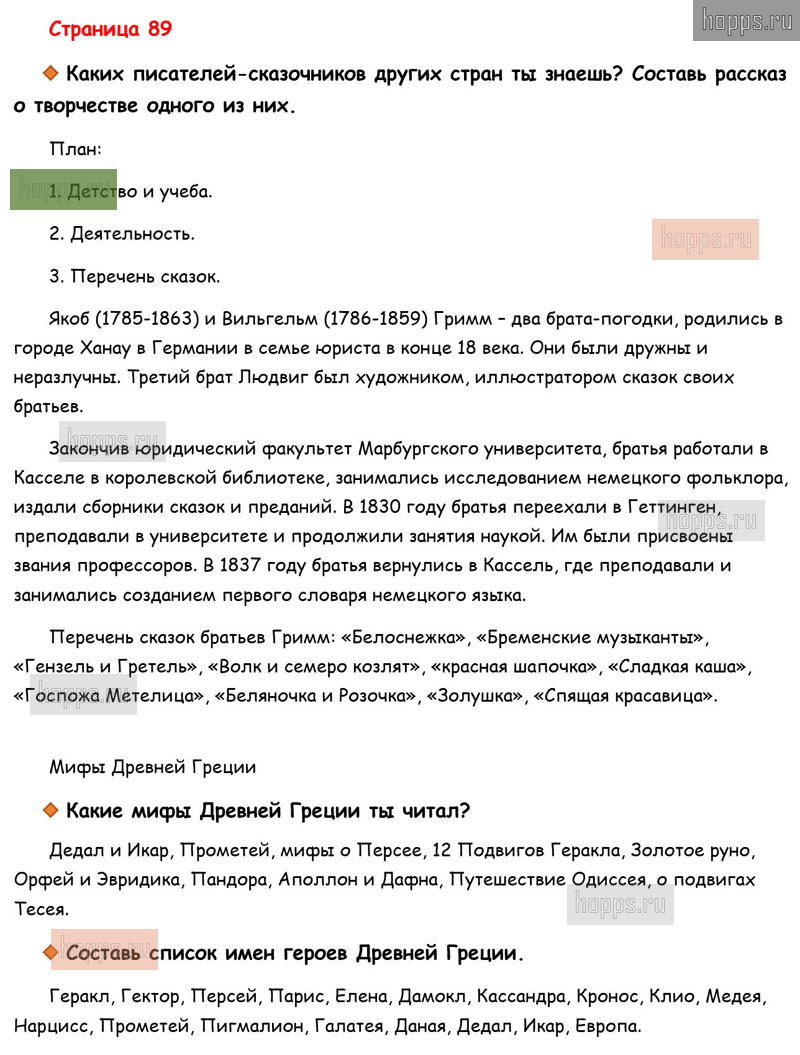 Готовые ответы к вопросам и заданиям на 89 странице рабочей тетради по литературному чтению для учащихся 3 класса, авторов М.В. Бойкина, Л.А. Виноградская, Школа России, 2019 г.